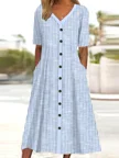 V-Neck Casual Loose Floral Vacation Half Sleeve Midi Dress