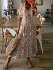 Casual V-neck Half Sleeve Woven Floral Maxi Dress