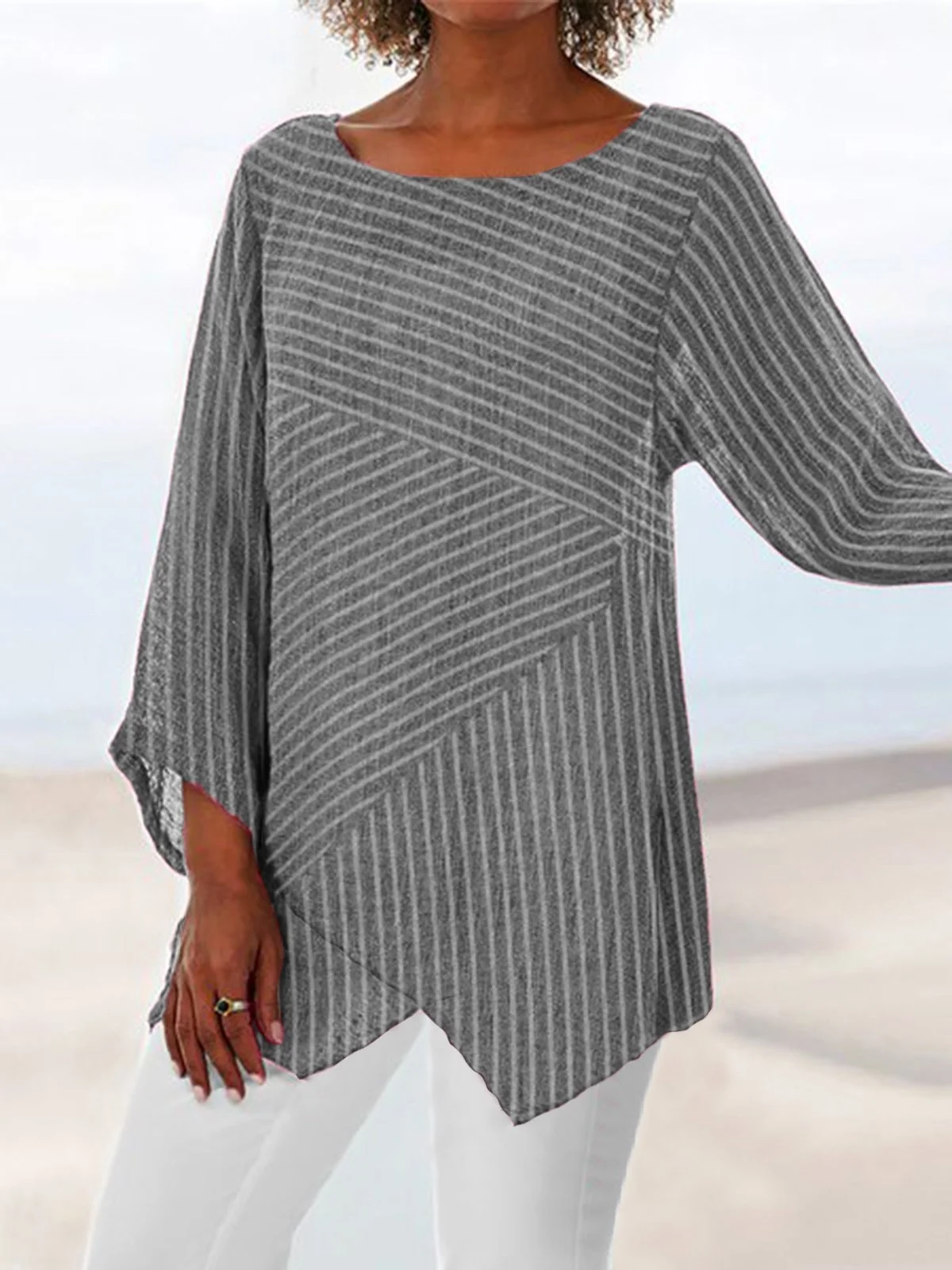 I really like this striped top, and the irregular hem is also very fashionableMuriel1 -
