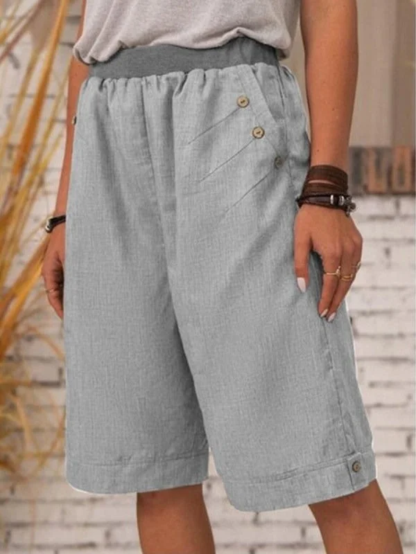 Solid Color Casual Comfy Holiday Shorts With Pockets