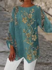 Casual Round Neck Orange Floral Printed T-shirt