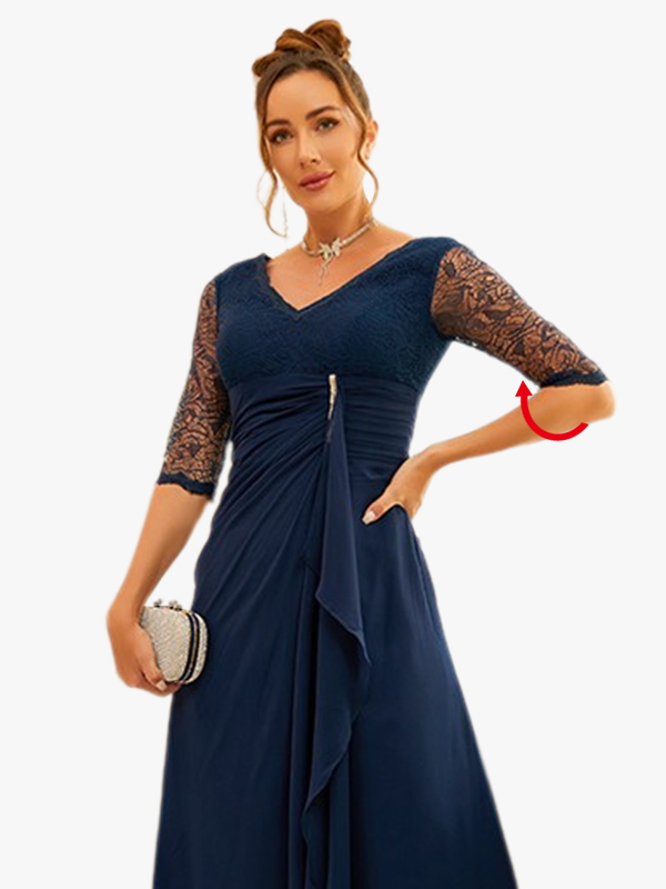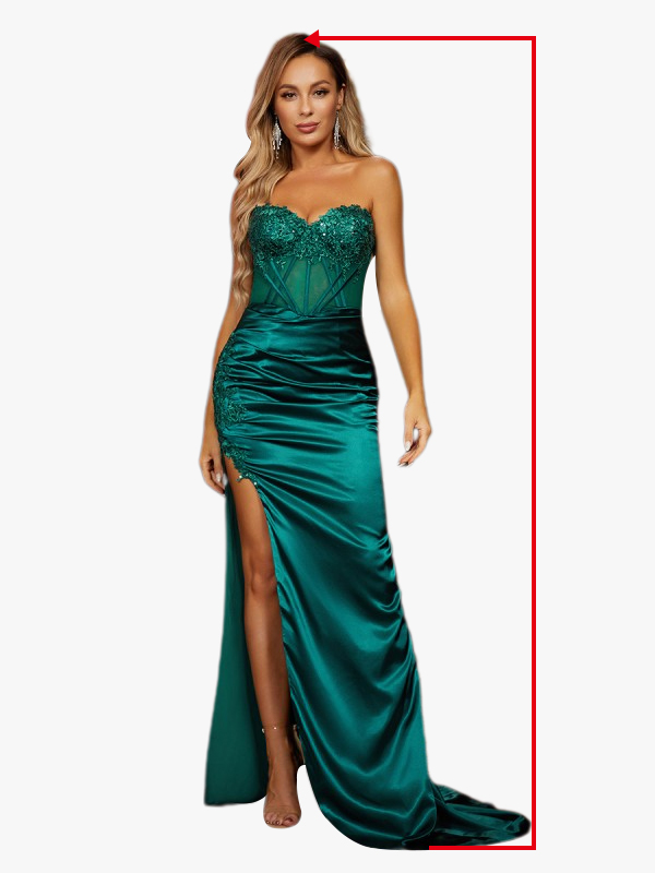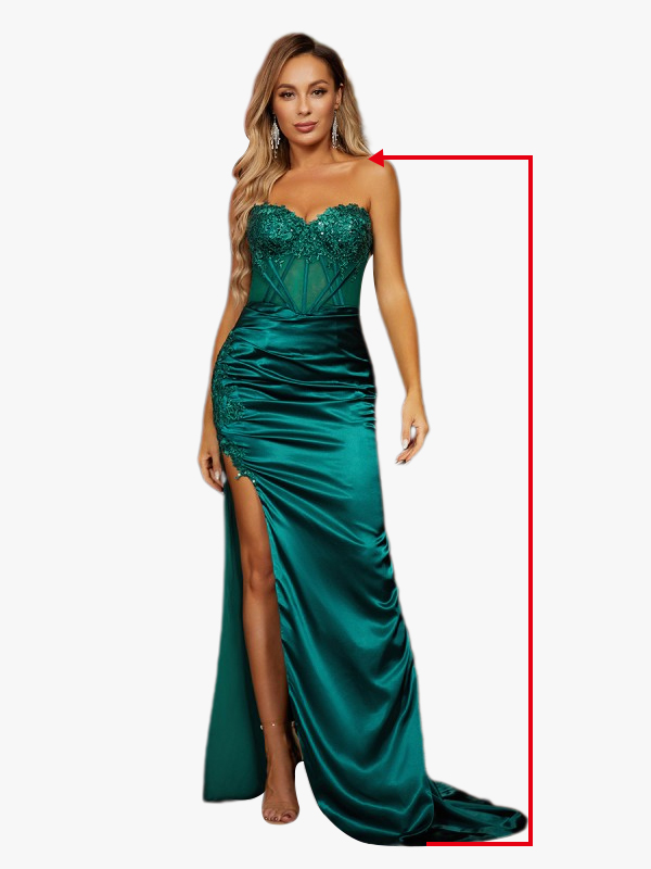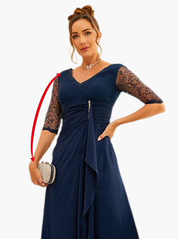 For dresses with sleeves, measure from the shoulder seam down to the desired sleeve length. If measuring on yourself, bend your arm slightly.
