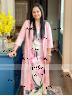 It is spot-on! The pink floral print is beautiful, and the round neck with long wearability is a huge plus.