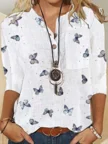 White Casual V Neck Polka Dots Printed Half Sleeve Blouse